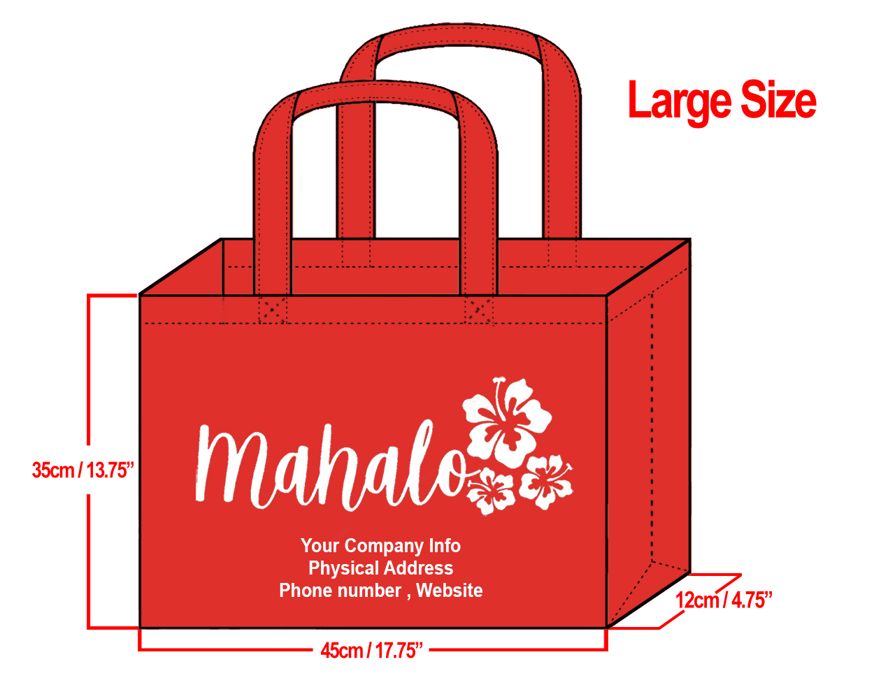 LARGE Red-35x45x12cm Mahalo Hibiscus Design & Your Info In White
