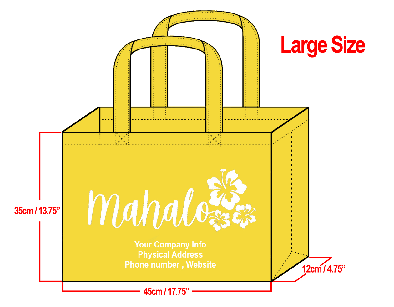 LARGE Yellow-35x45x12cm Mahalo Hibiscus Design & Your Info In White