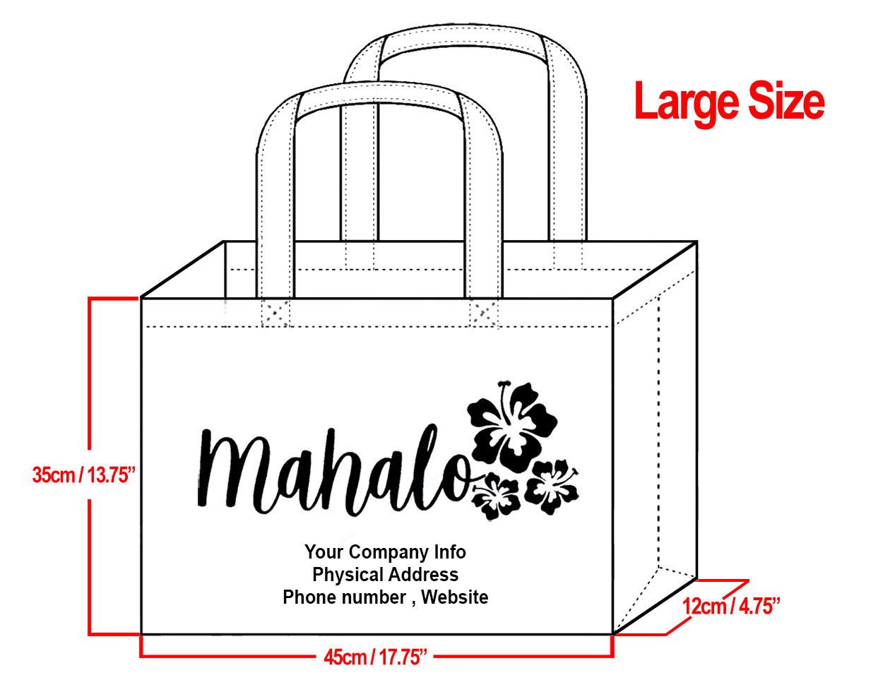 LARGE Black-35x45x12cm Mahalo Hibiscus Design & Your Info In Bla