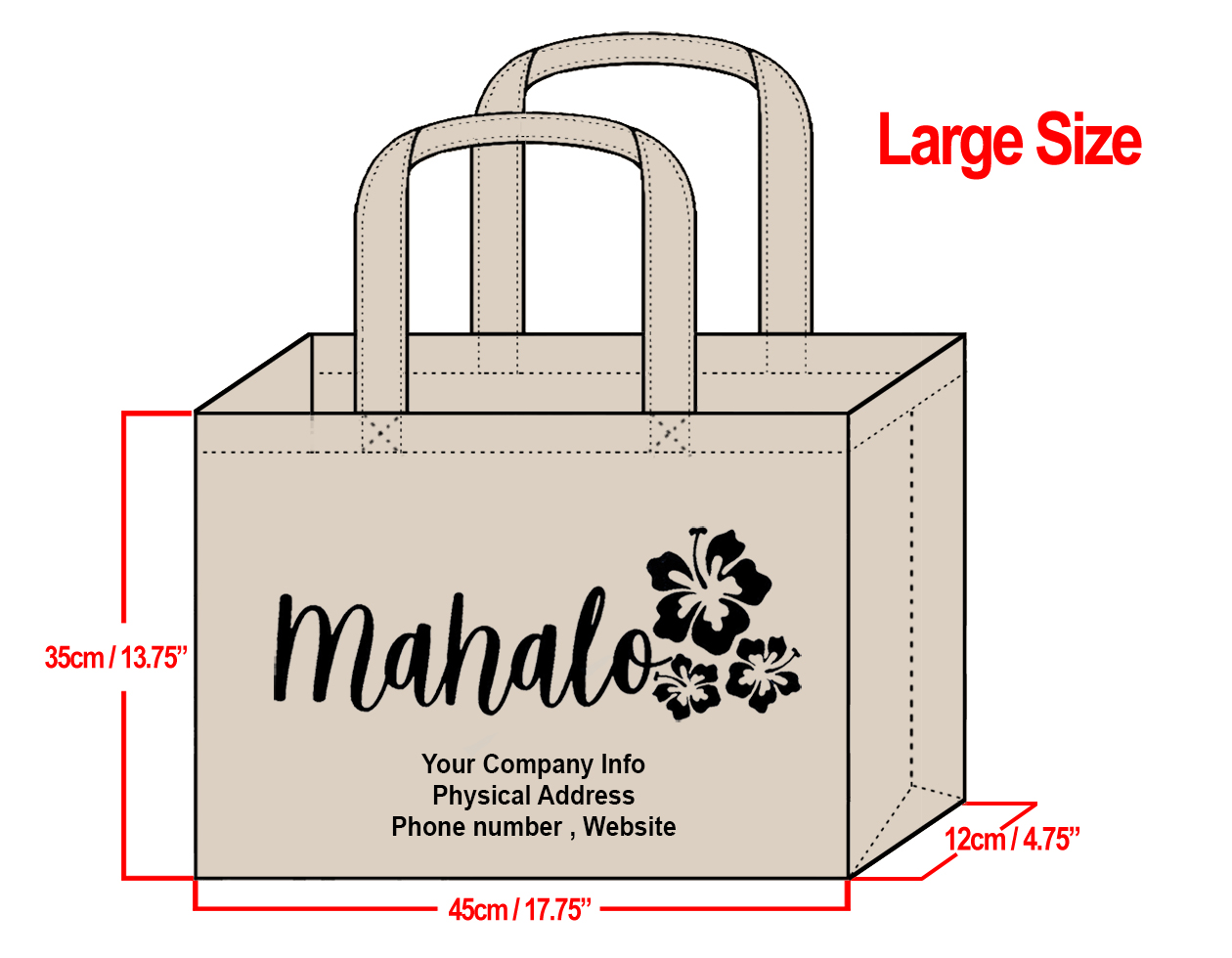 LARGE Cream-35x45x12cm Mahalo Hibiscus Design & Your Info In Bla