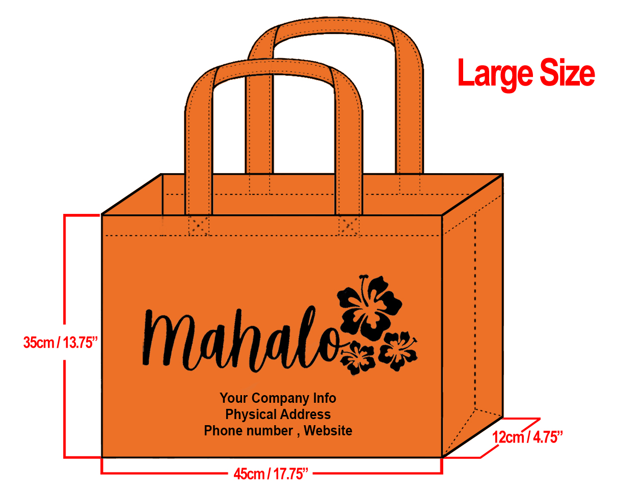LARGE Orange-35x45x12cm Mahalo Hibiscus Design & Your Info In Bl