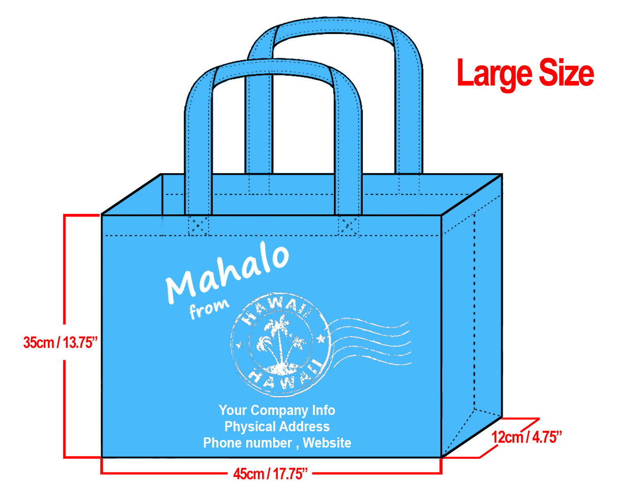 LARGE Teal-35x45x12cm Mahalo from HI Design & Your Info In White