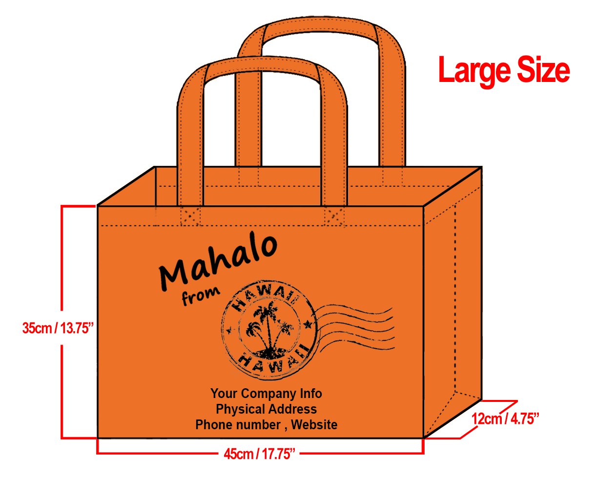 LARGE Orange-35x45x12cm Mahalo from HI Design & Your Info In Bla