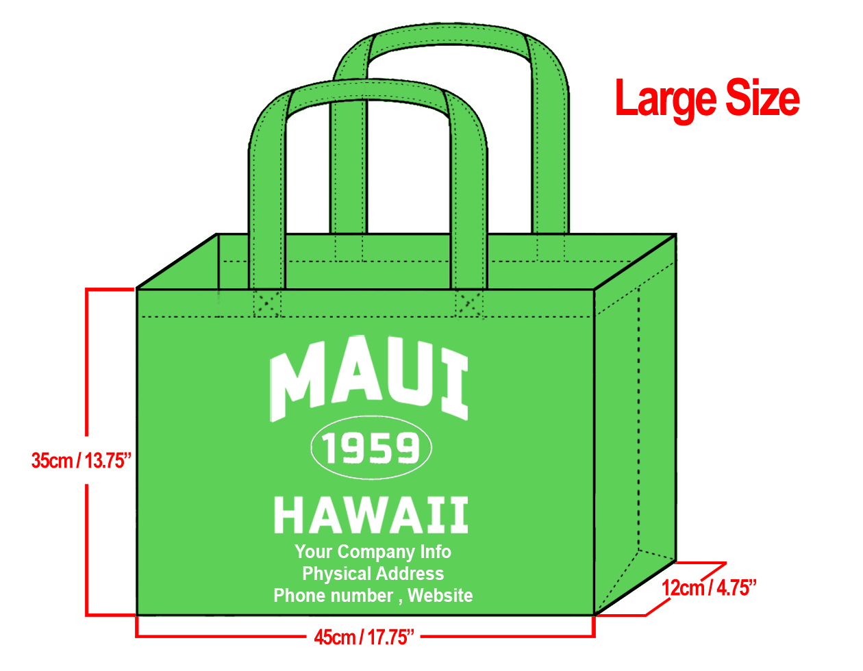LARGE Green-35x45x12cm Maui 1959 & Your Info In White