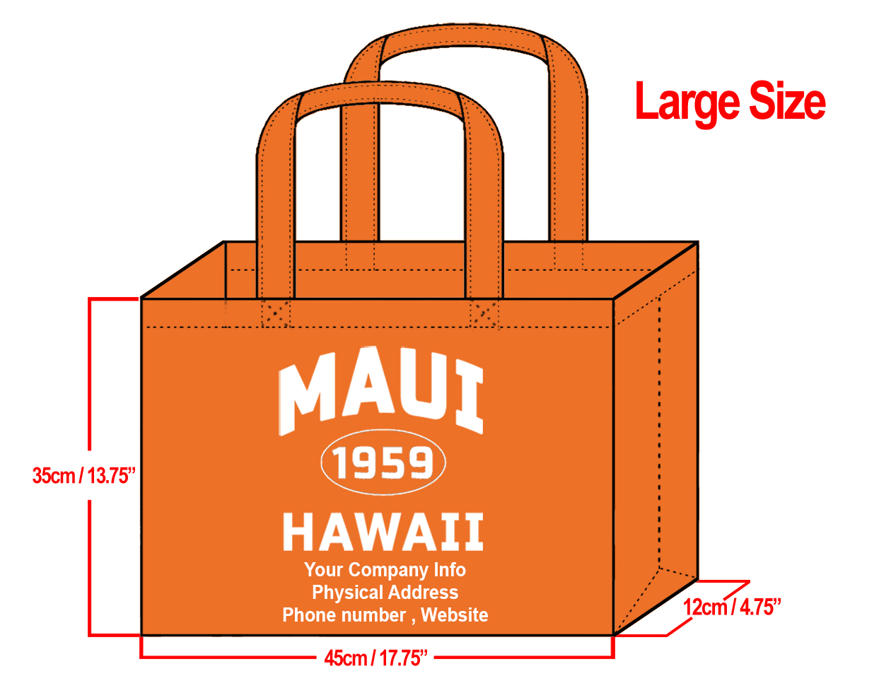 LARGE Orange-35x45x12cm Maui 1959 & Your Info In White