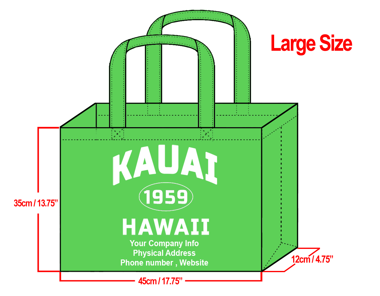 LARGE Green-35x45x12cm Kauai 1959 & Your Info In White