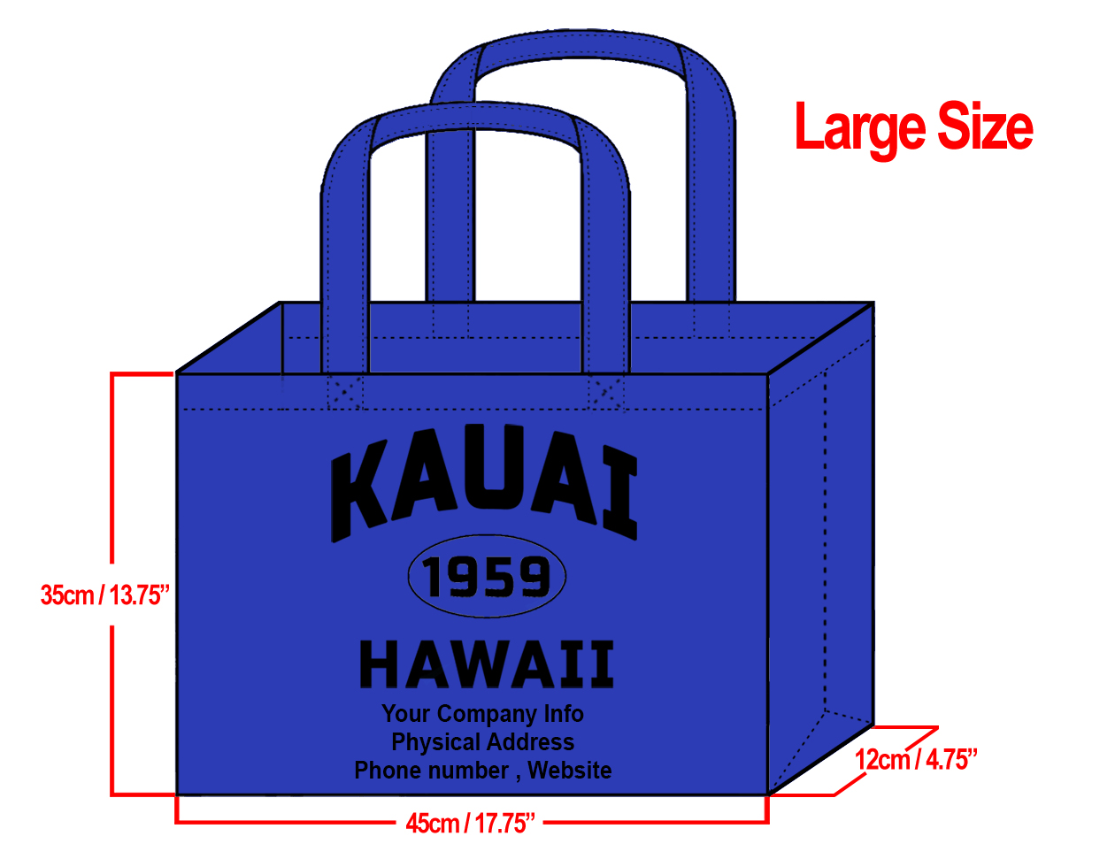 LARGE Navy-35x45x12cm Kauai 1959 & Your Info In Black