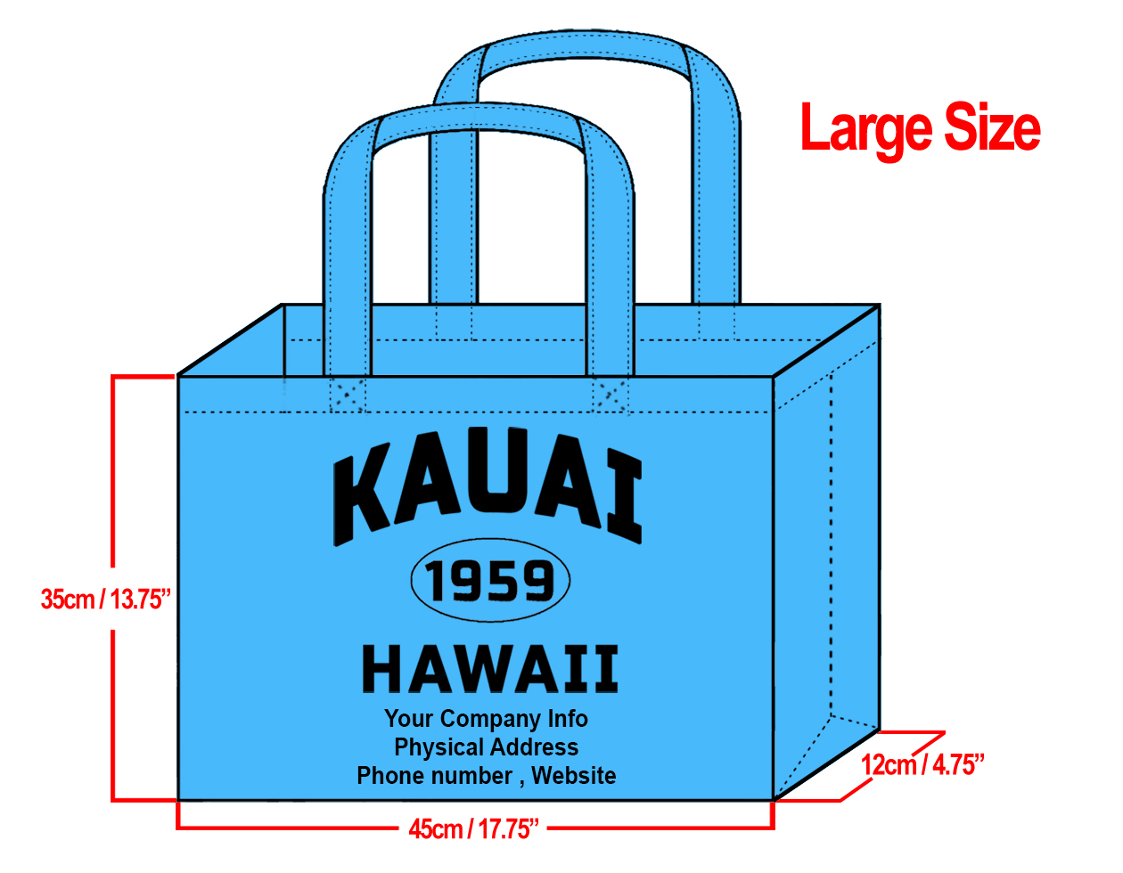 LARGE Teal-35x45x12cm Kauai 1959 & Your Info In Black