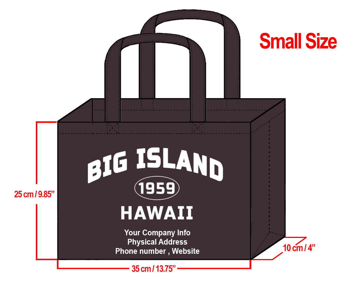 SMALL Brown-25x35x10cm Big Island 1959 & Your Info In White