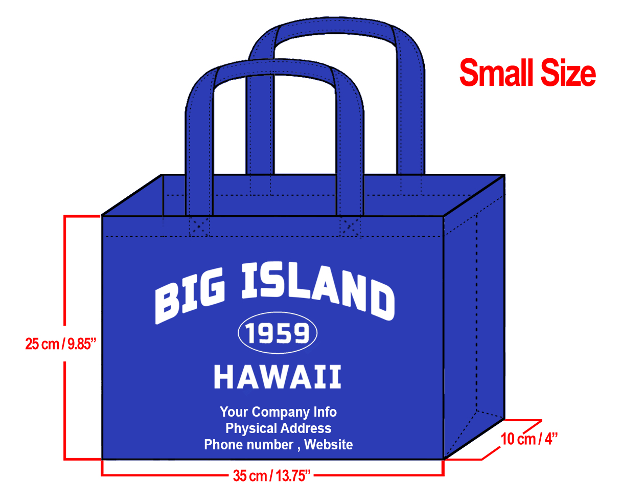 SMALL Navy-25x35x10cm Big Island 1959 & Your Info In White