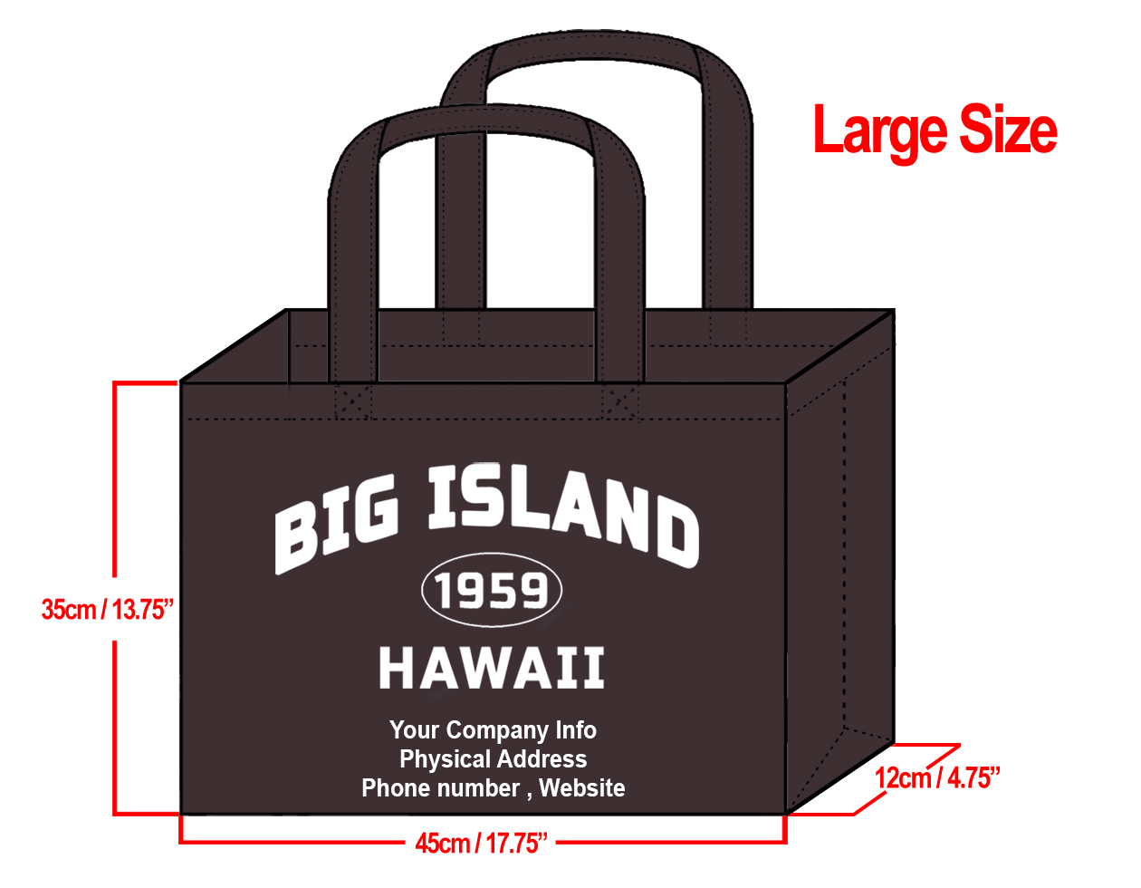 LARGE Brown-35x45x12cm Big Island 1959 & Your Info In White