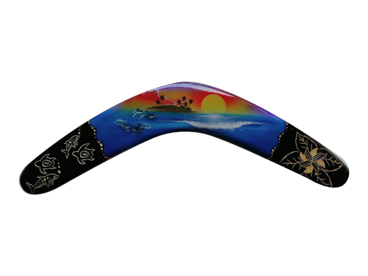 Special Order-40cm Wood Boomerang Airbrush Carved Hawaii Theme