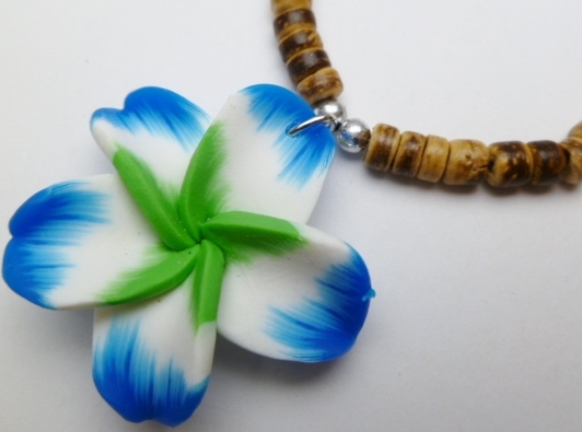 Blue & Green Fimo Flower w/ 18″ Coconut Beads Necklace (20083-26)