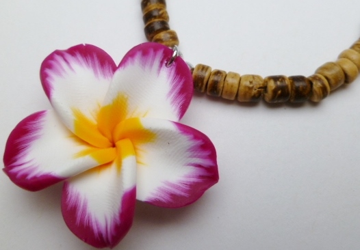 Hot Pink & Yellow Fimo Flower w/ 18″ Coconut Beads Necklace (20083-28)