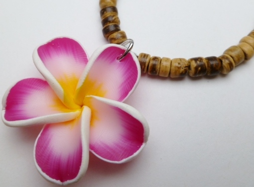Pink Fimo Flower w/ 18″ Coconut Beads Necklace (20083-25)