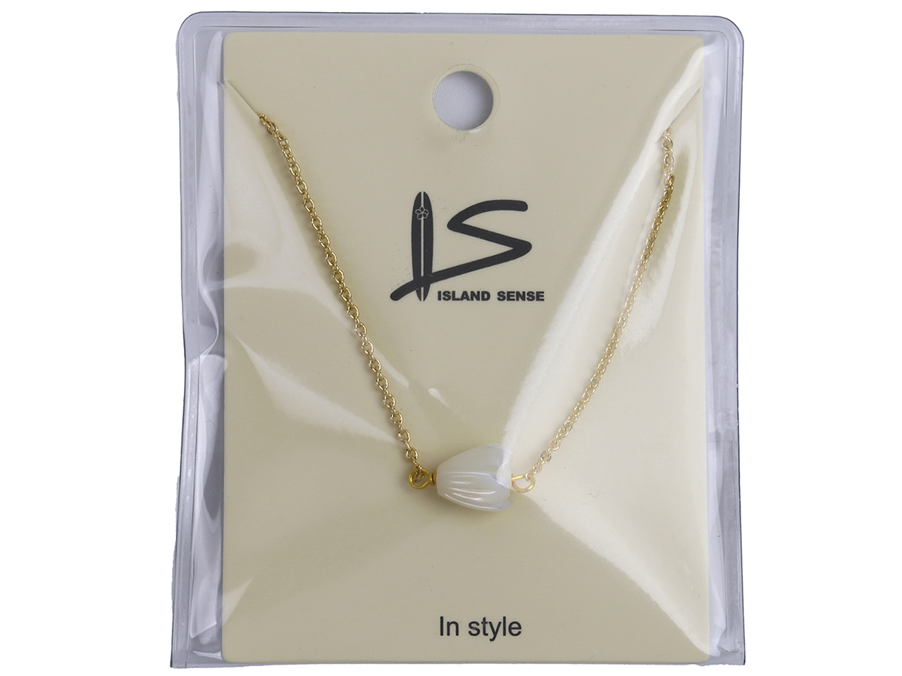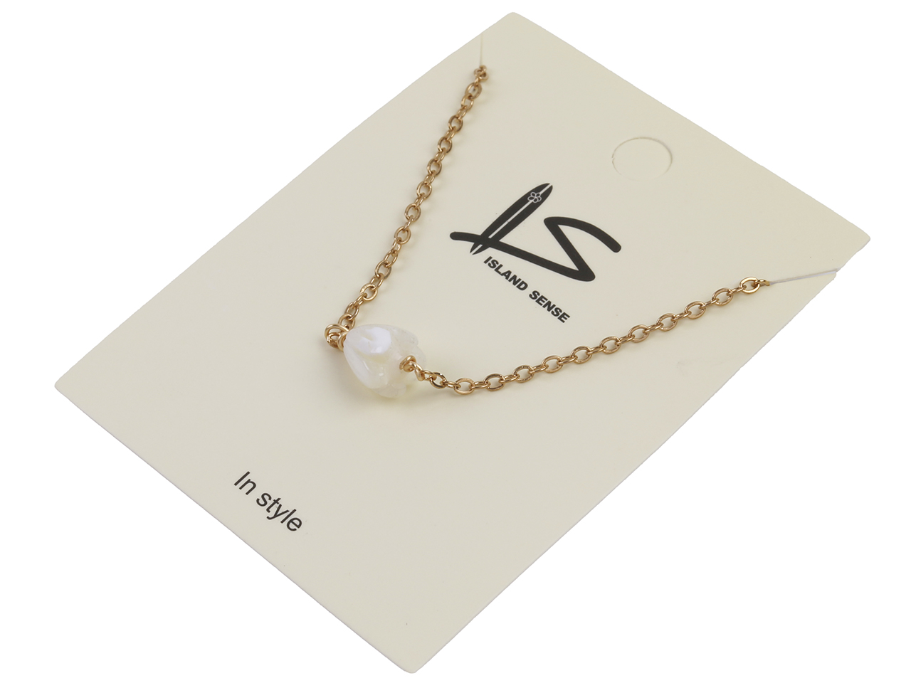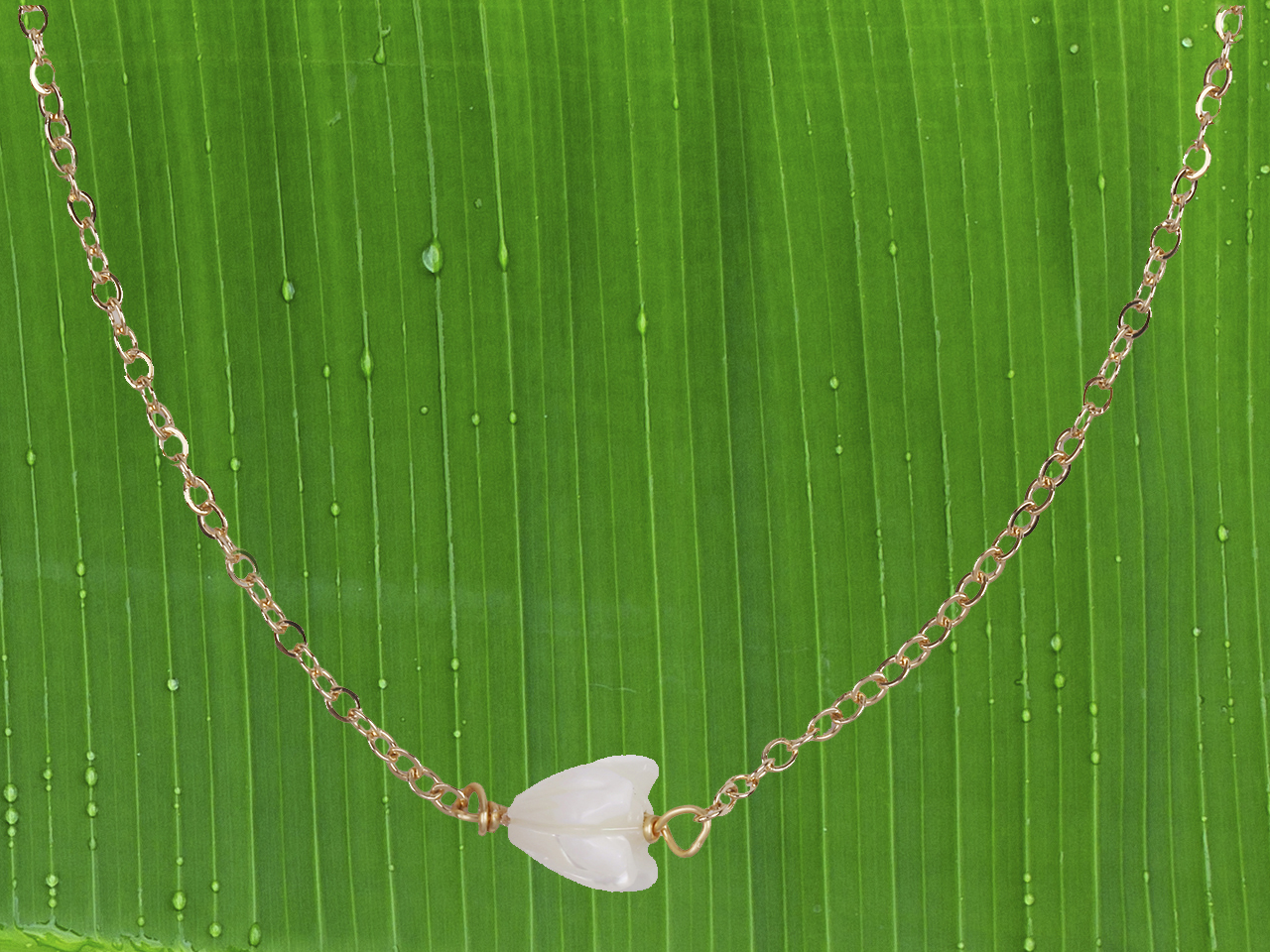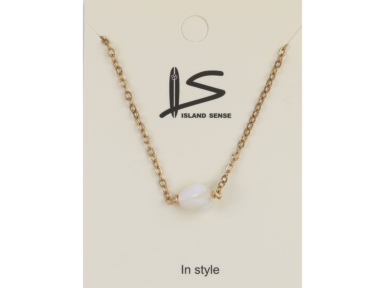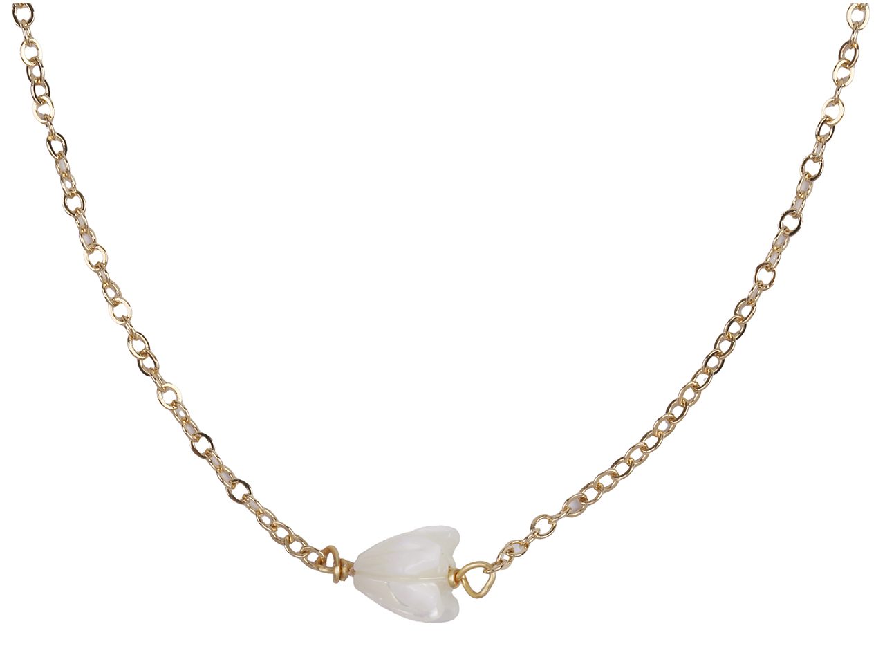 6x8mm MOP Pikake Flower on Gold Tone Chain Necklace, 16″+2″ Ext, MOQ-6
