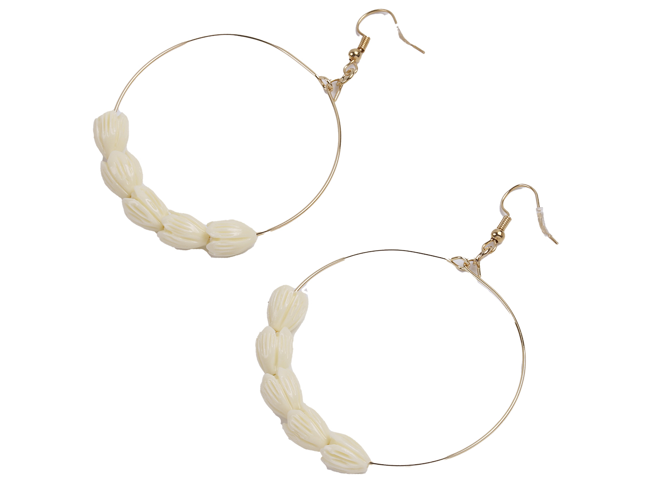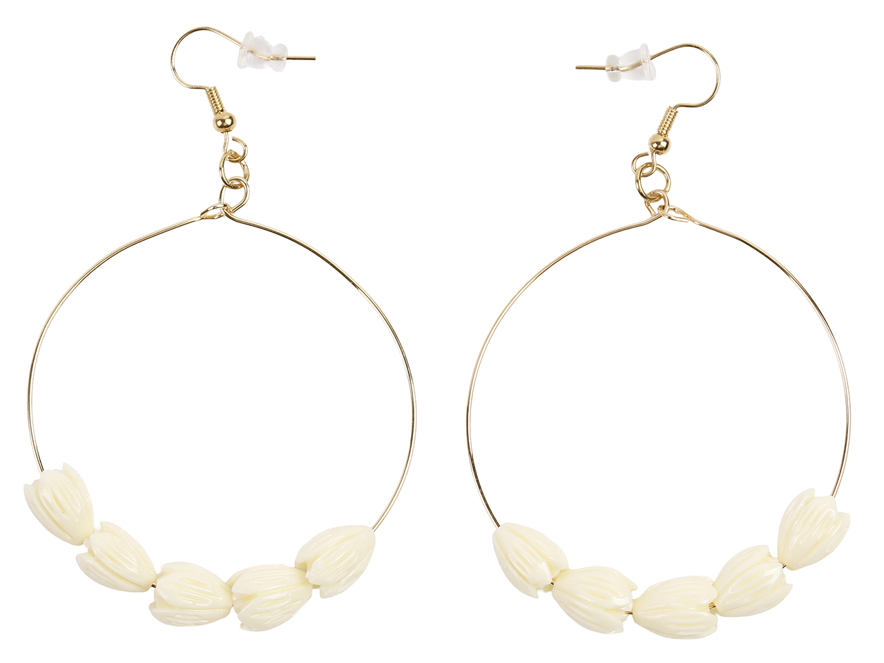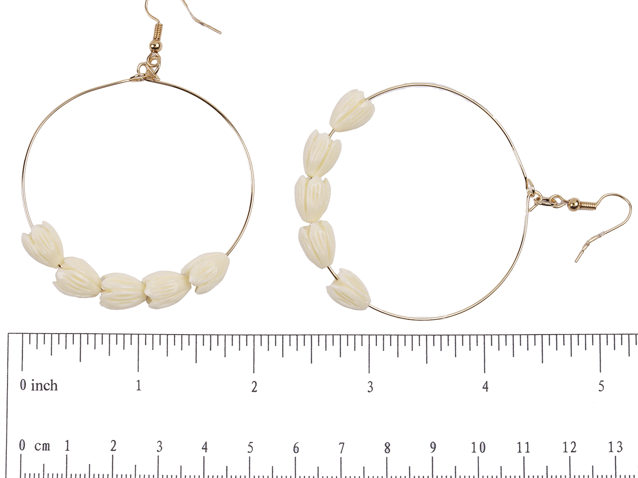 8x10mm Synthetic Pikake Flower Gold Tone Hoop Earrings, MOQ-6