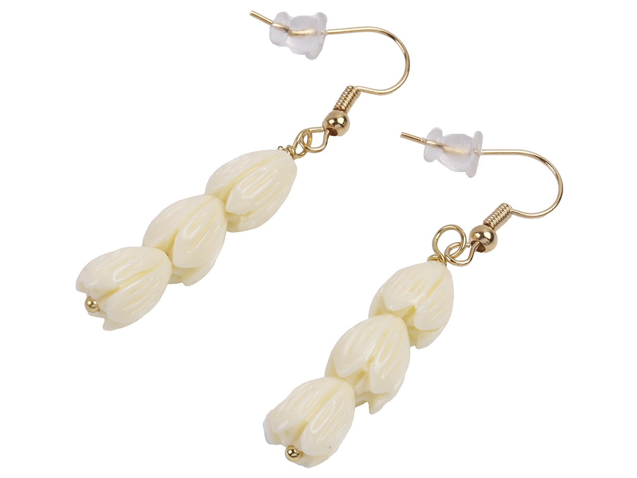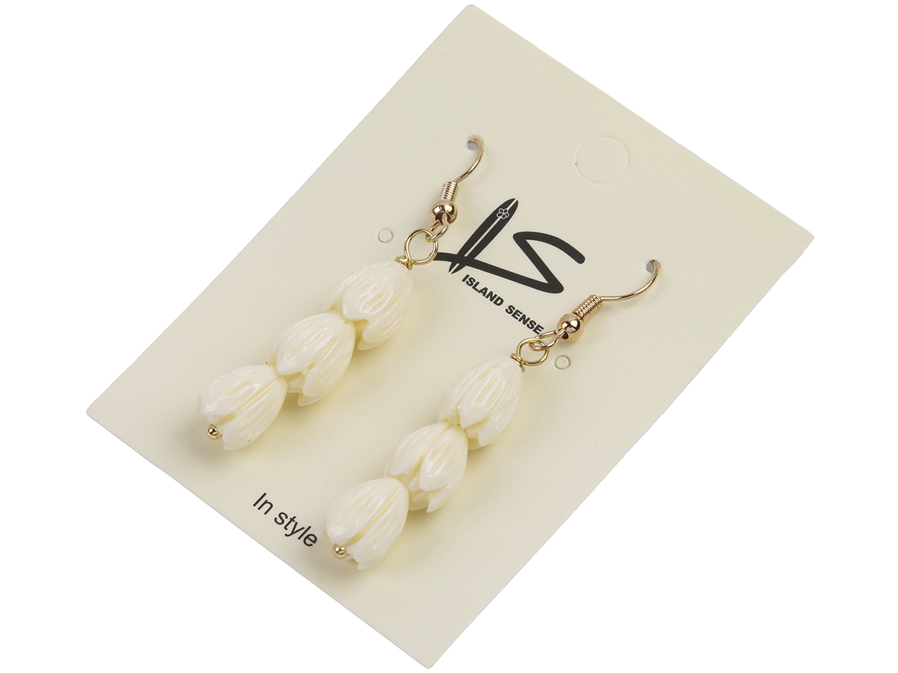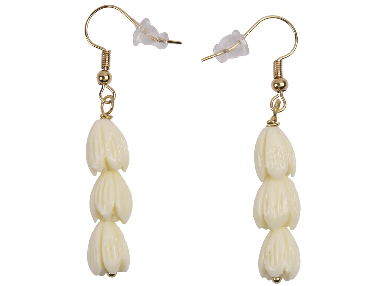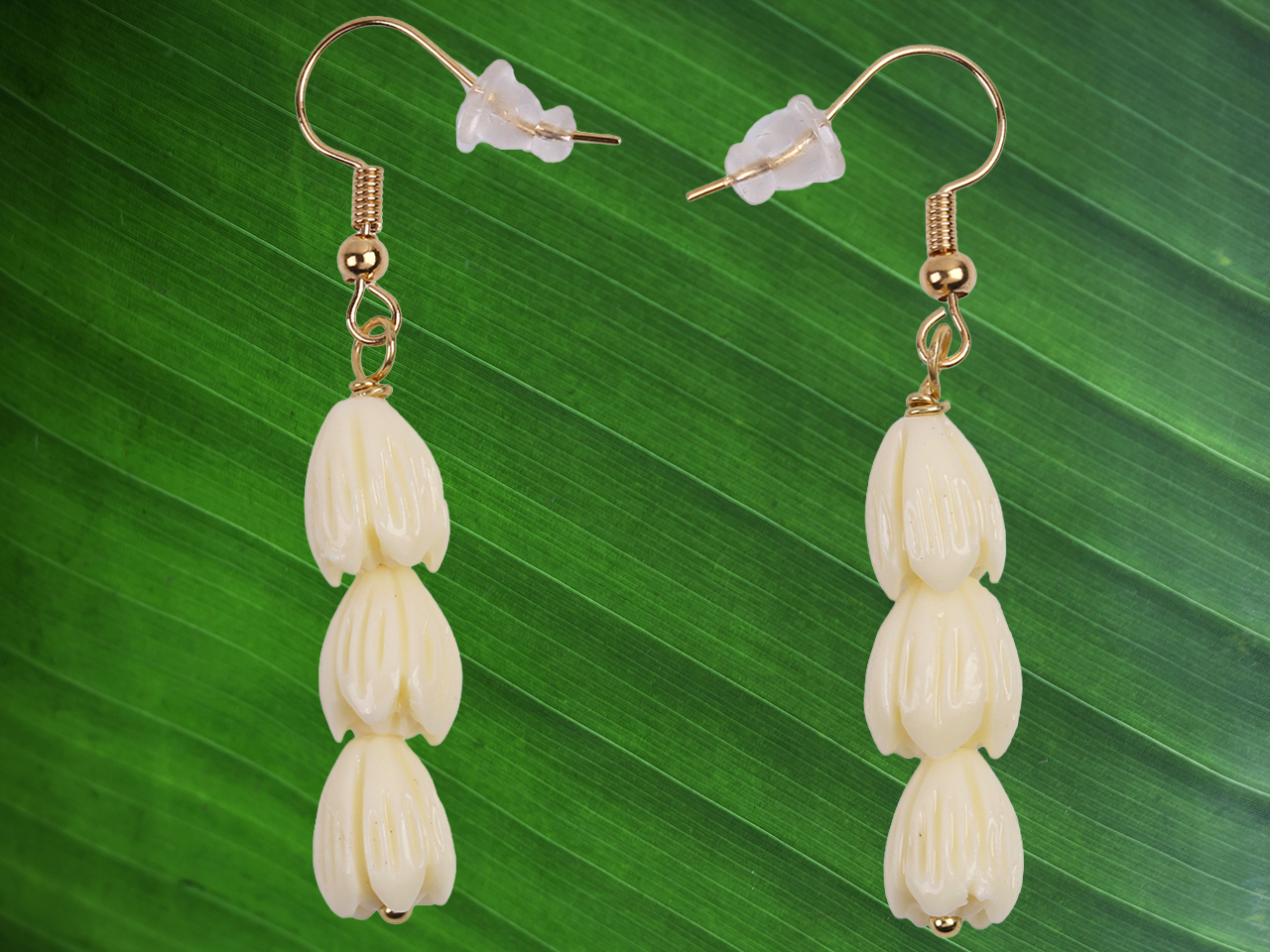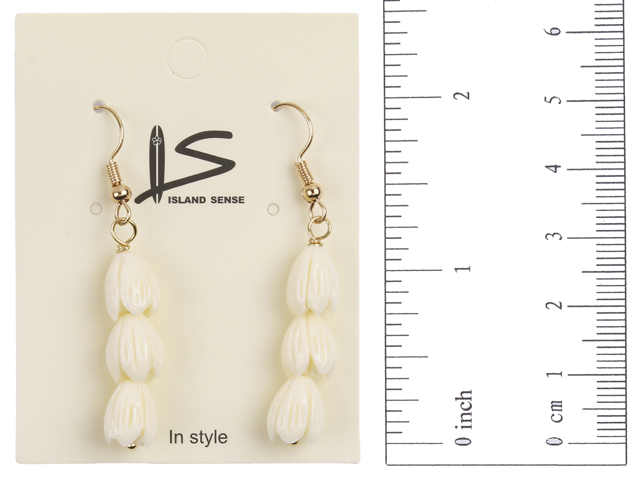 8x10mm Triple Synthetic Pikake Flower Gold Tone Earrings, MOQ-6