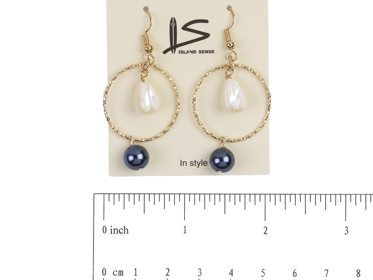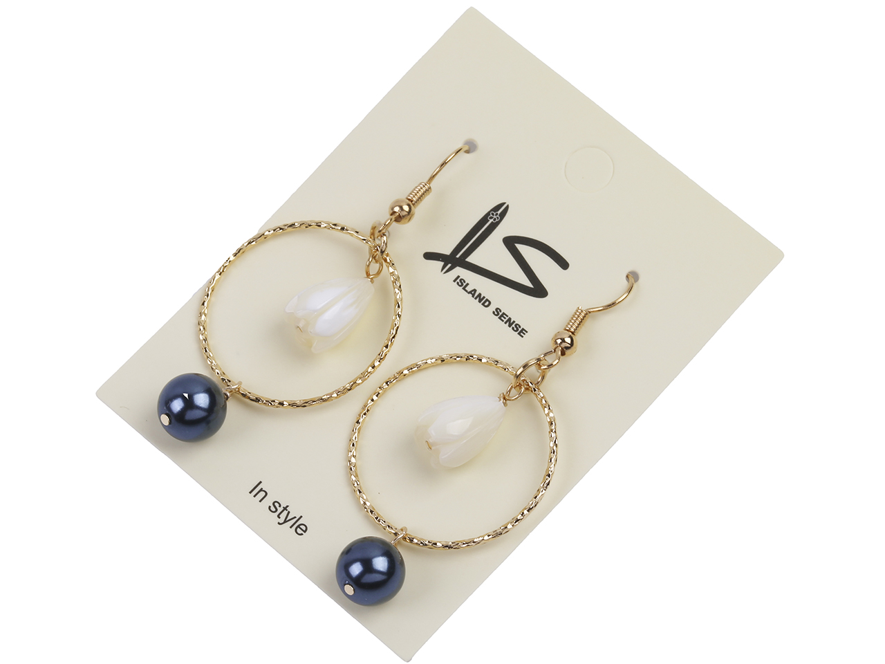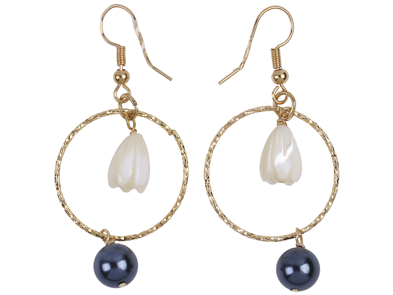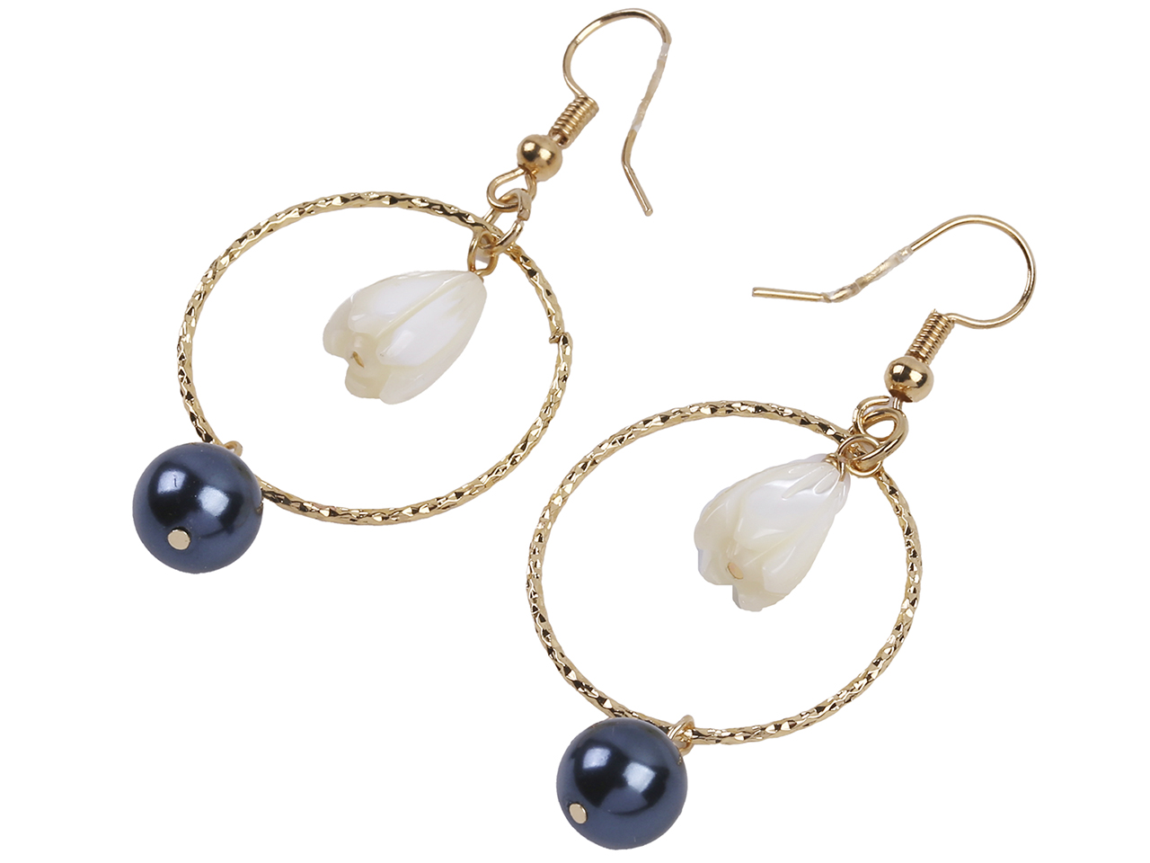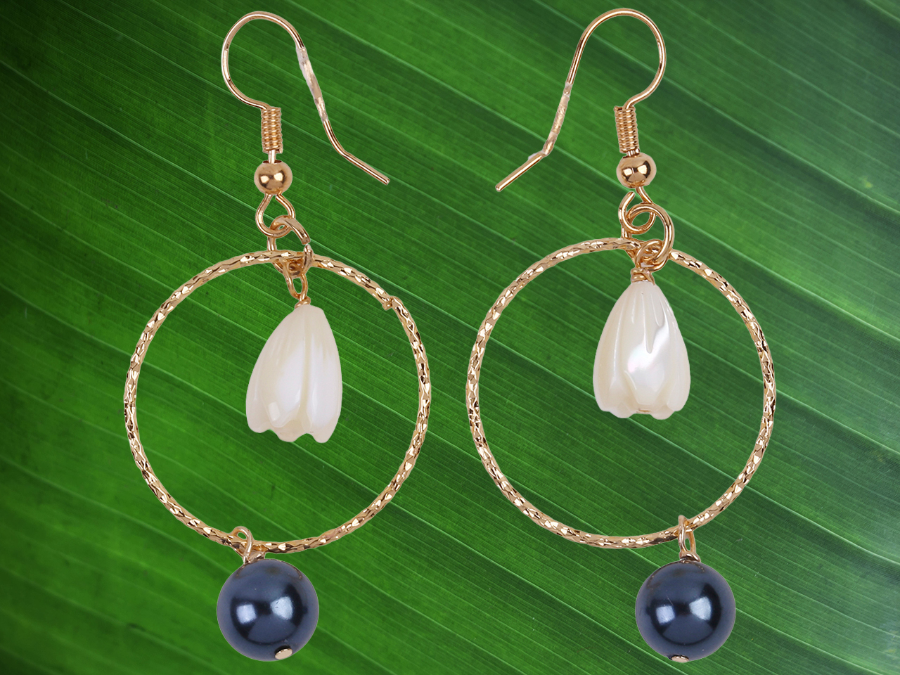 8x11mm MOP Pikake Flower & Black Pearl on Gold Tone Hoop Earrings, MOQ-6