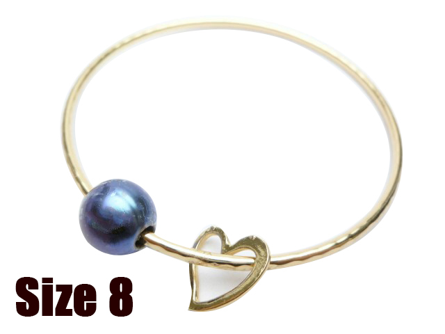 12-13mm Black Pearl Gold Tone Love Charm Bangle 8″, MOQ-6