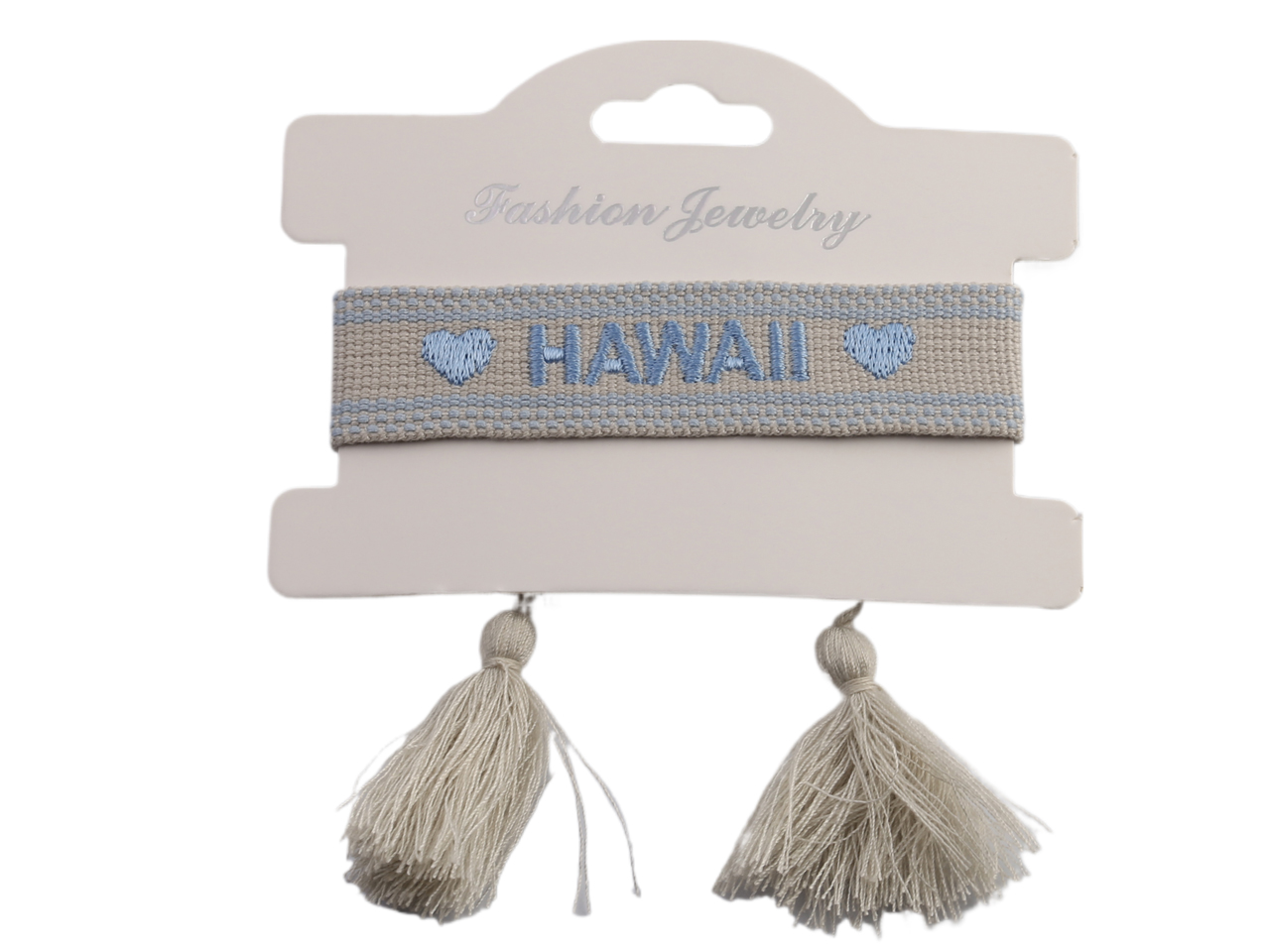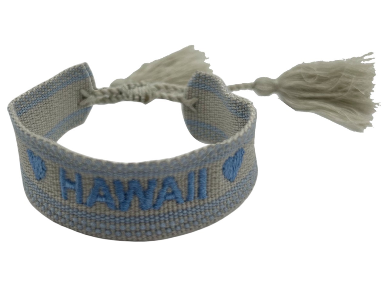 Grey / Blue Woven “Hawaii” Embroidery Adjustable Tassel Bracelet, MOQ-5