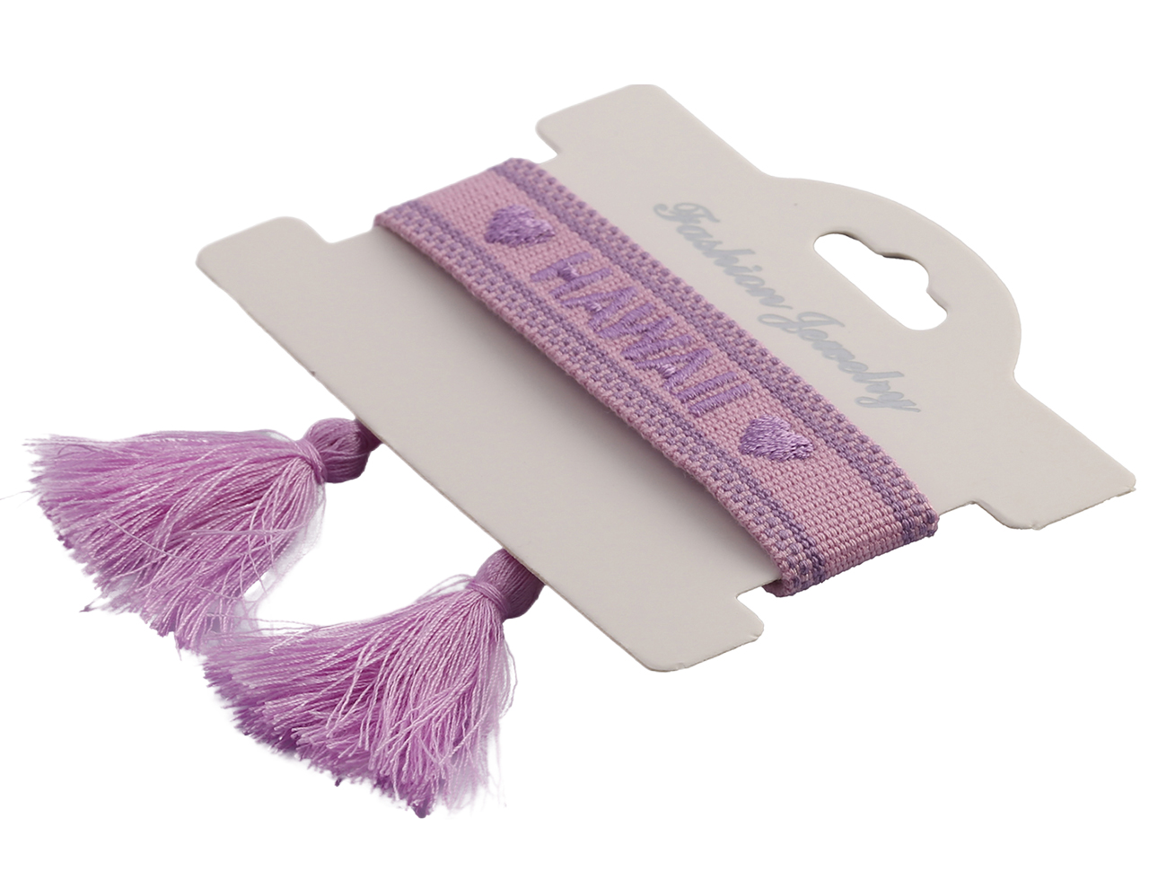 Purple Woven “Hawaii” Embroidery Adjustable Tassel Bracelets, MOQ-6