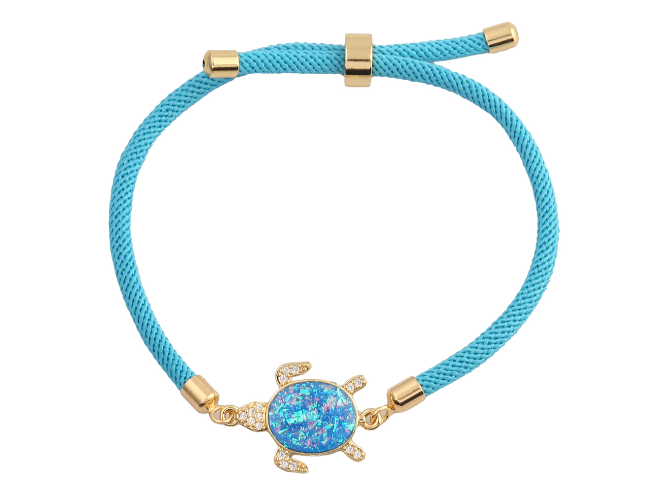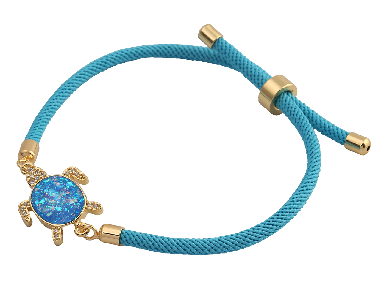 Blue Synthetic Opal Turtle Blue Rope Adjustable Bracelet