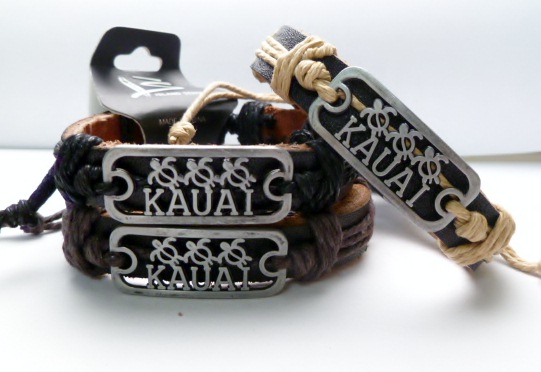 Genuine Leather with Metal 3-Turtle & “Kauai” ID Bracelet